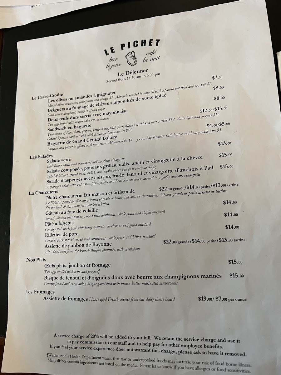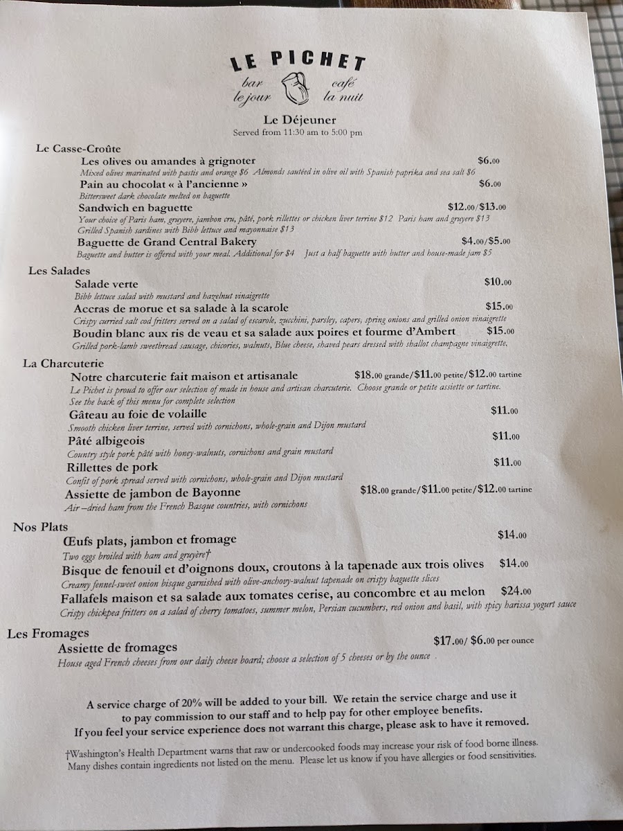 With a focus on excellent service and an inviting atmosphere, Le Pichet is more than just a meal; it's an experience to cherish, making it a go-to destination for both locals and visitors seeking authentic French fare.