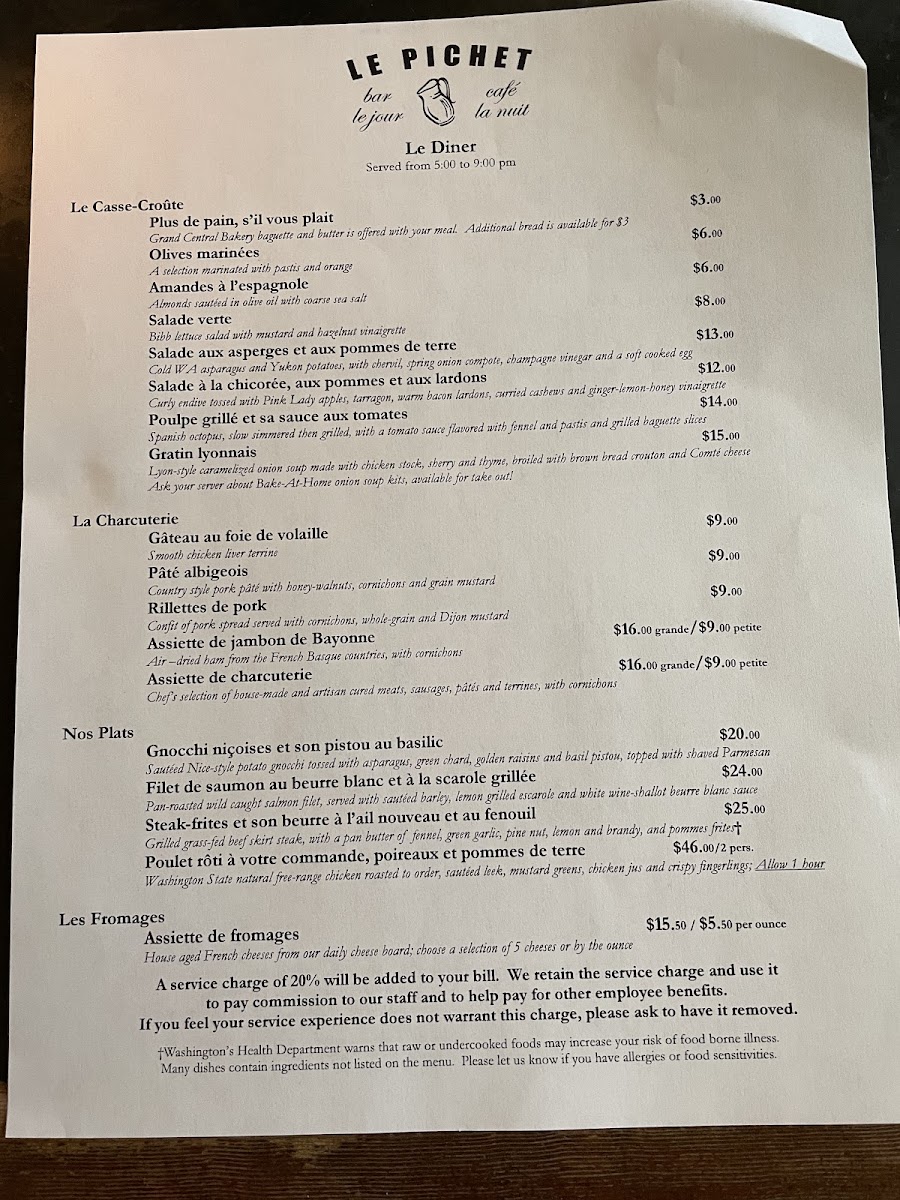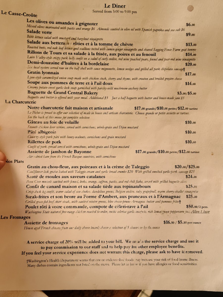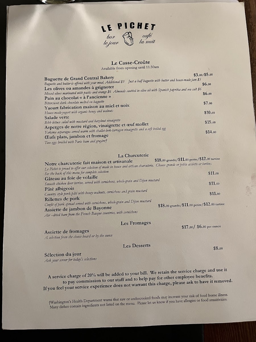 Welcome to Le Pichet, an enchanting French bistro located near Pike Place Market in Seattle. This charming eatery boasts a menu that celebrates seasonal ingredients, ensuring every visit offers a fresh and delightful experience.